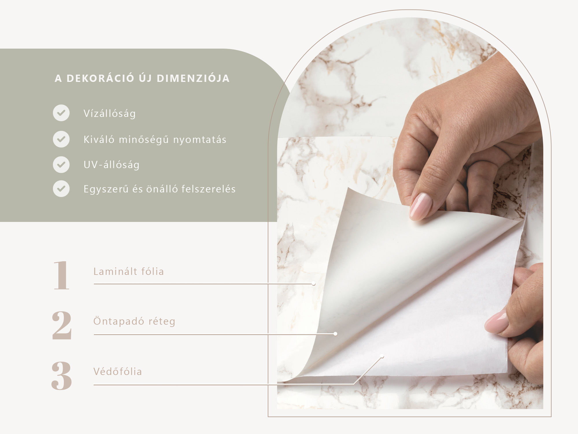 - Ne feledd, hogy nyomtatott csempére való matricákat vásárolsz. Az olyan minták, mint pl. csillám, arany, ezüst, beton, márvány, rozsdás lemez stb. csak nyomtatottak, ezért megjelenésük eltérhet a valódi megfelelőiktől.