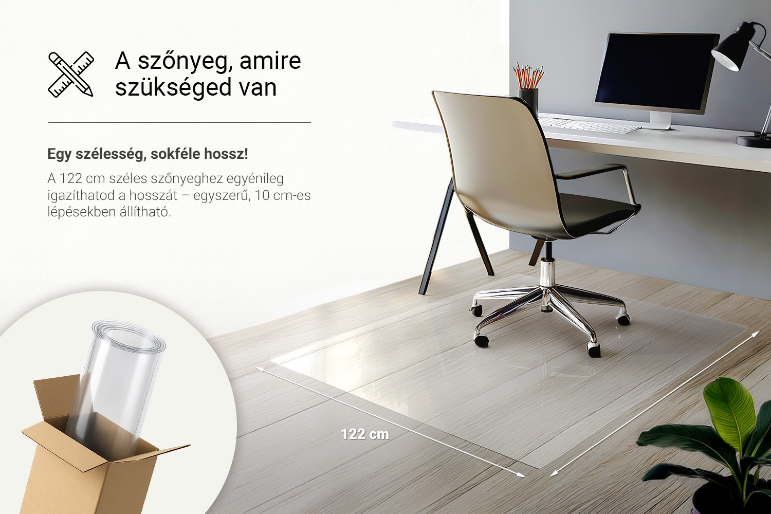 A hosszúságot igényeidhez igazíthatod – a szőnyeg 10 cm-es darabokban elérhető.